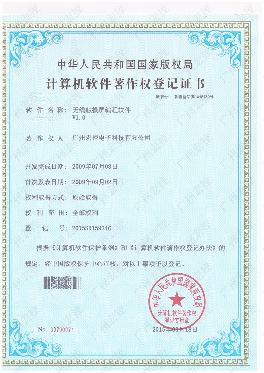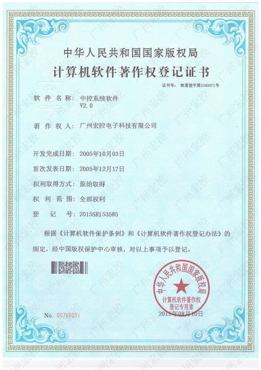 中控系統(tǒng)軟件著作產(chǎn)權(quán)證書