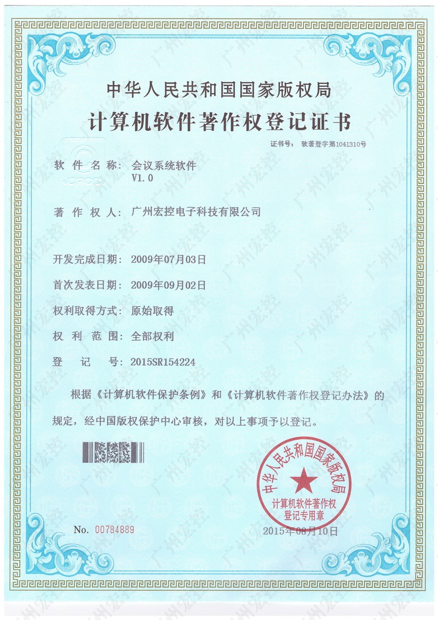會議系統(tǒng)主機內(nèi)嵌軟件著作產(chǎn)權(quán)證書