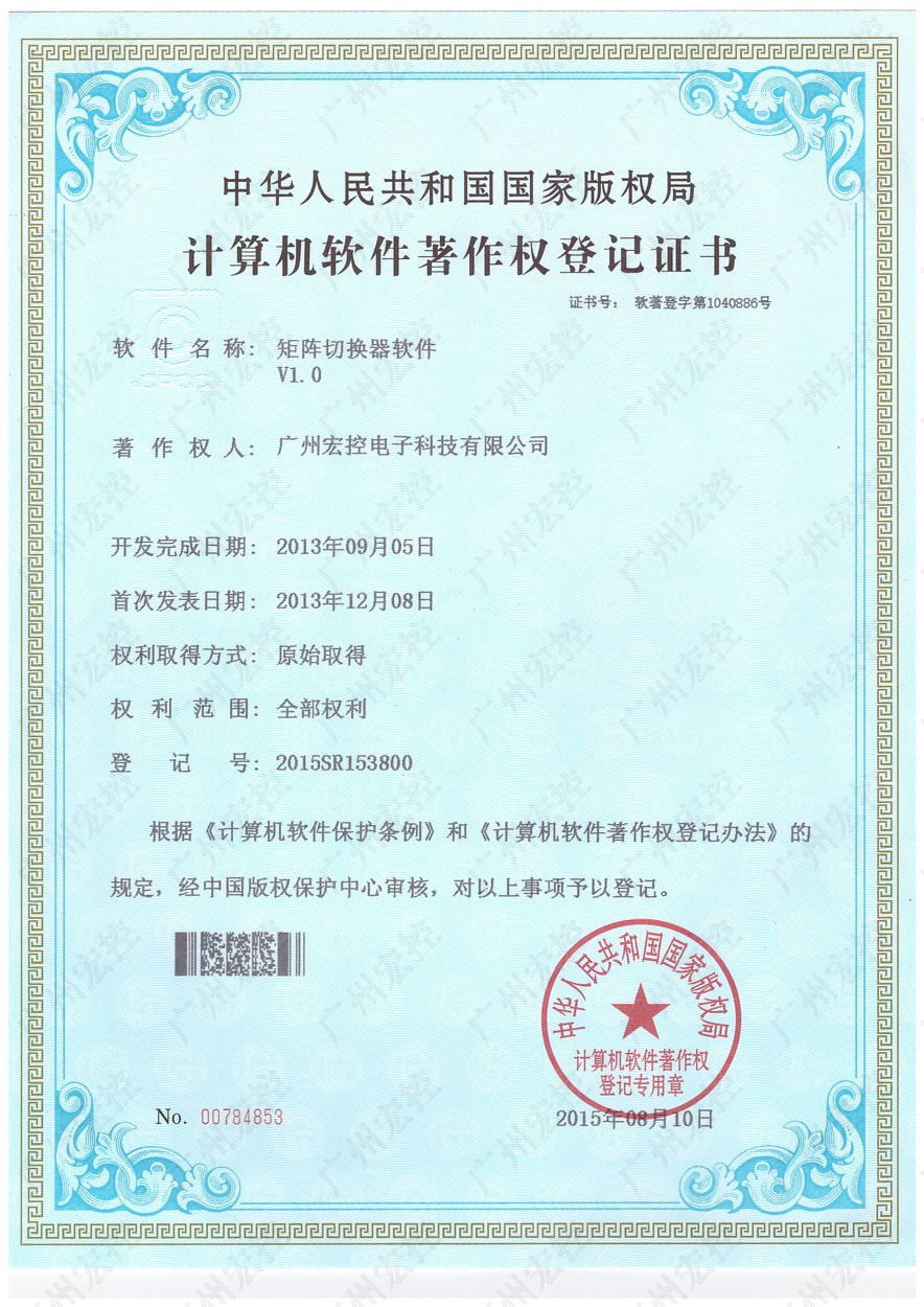 矩陣內(nèi)嵌軟件著作產(chǎn)權(quán)證書
