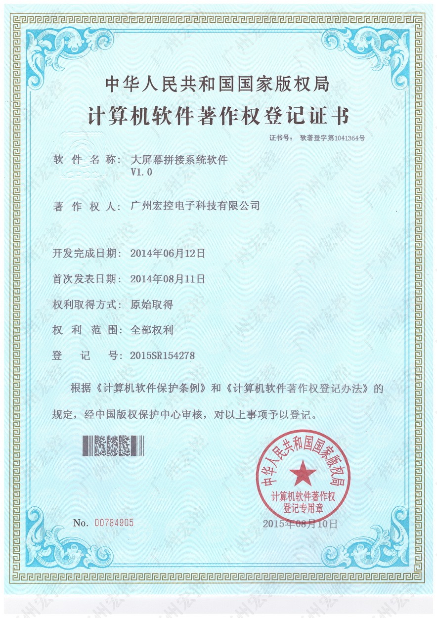 大屏幕拼接軟件著作產(chǎn)權(quán)證書
