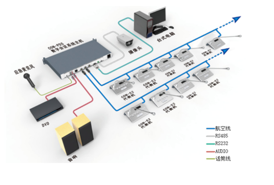 ?具有多組音頻通道輸出,可連接PA功放對發(fā)言者的講話進行放大輸出,也可連接錄音系統(tǒng)、電話會 議系統(tǒng)等;