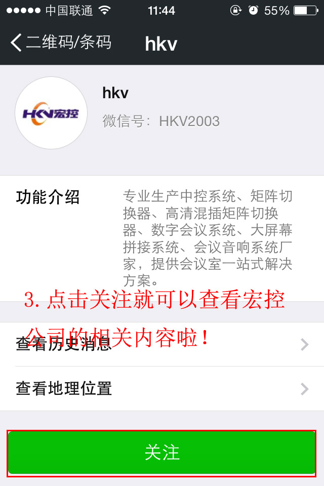 第三步:選擇關(guān)注宏控微信公眾帳號(hào)