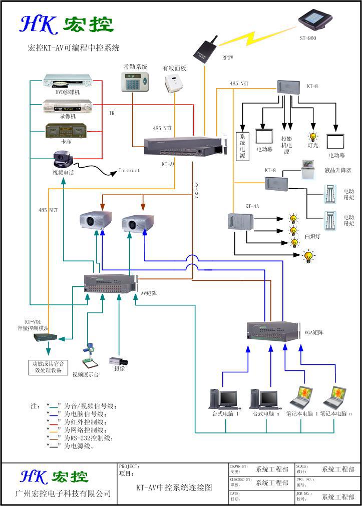 · 通過KT-8(8路強(qiáng)電繼電器),控制電動(dòng)吊架和屏幕的上升、下降、停止;并且能夠自動(dòng)實(shí)現(xiàn)關(guān)聯(lián)動(dòng)作,如投影機(jī)開時(shí),電動(dòng)吊架和屏幕自動(dòng)下降,投影機(jī)關(guān)時(shí)電動(dòng)吊架和屏幕自動(dòng)上升;