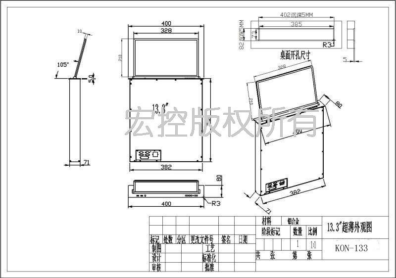 ⊙采用優(yōu)質(zhì)觸控式感應按鍵設計,提高按鈕壽命、翻轉(zhuǎn)機構(gòu)下降時,液晶顯示器自動斷電,信號切換功能;