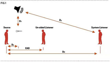 音源到話筒處的聲壓級與話筒處到Un-aided Listener處的聲壓級之差為:20log(EAD/DS)
