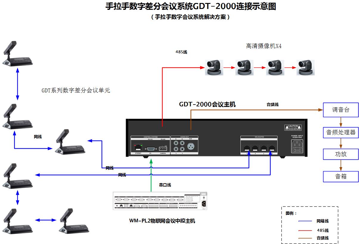 GDT-2000A數(shù)字差分會議系統(tǒng)連接圖